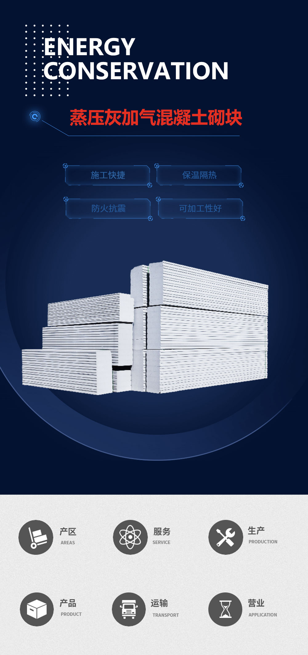 選用品質(zhì)粉煤灰、石灰、水泥為原料制成的一種具有施工快捷、保溫隔熱、防火抗震、可加工性好等優(yōu)點(diǎn)的輕質(zhì)多孔材料。一塊砌塊相當(dāng)于18塊紅磚,并可連續(xù)砌筑,不受砌筑的高度限制,可提高施工速度,降低勞動(dòng)成本。