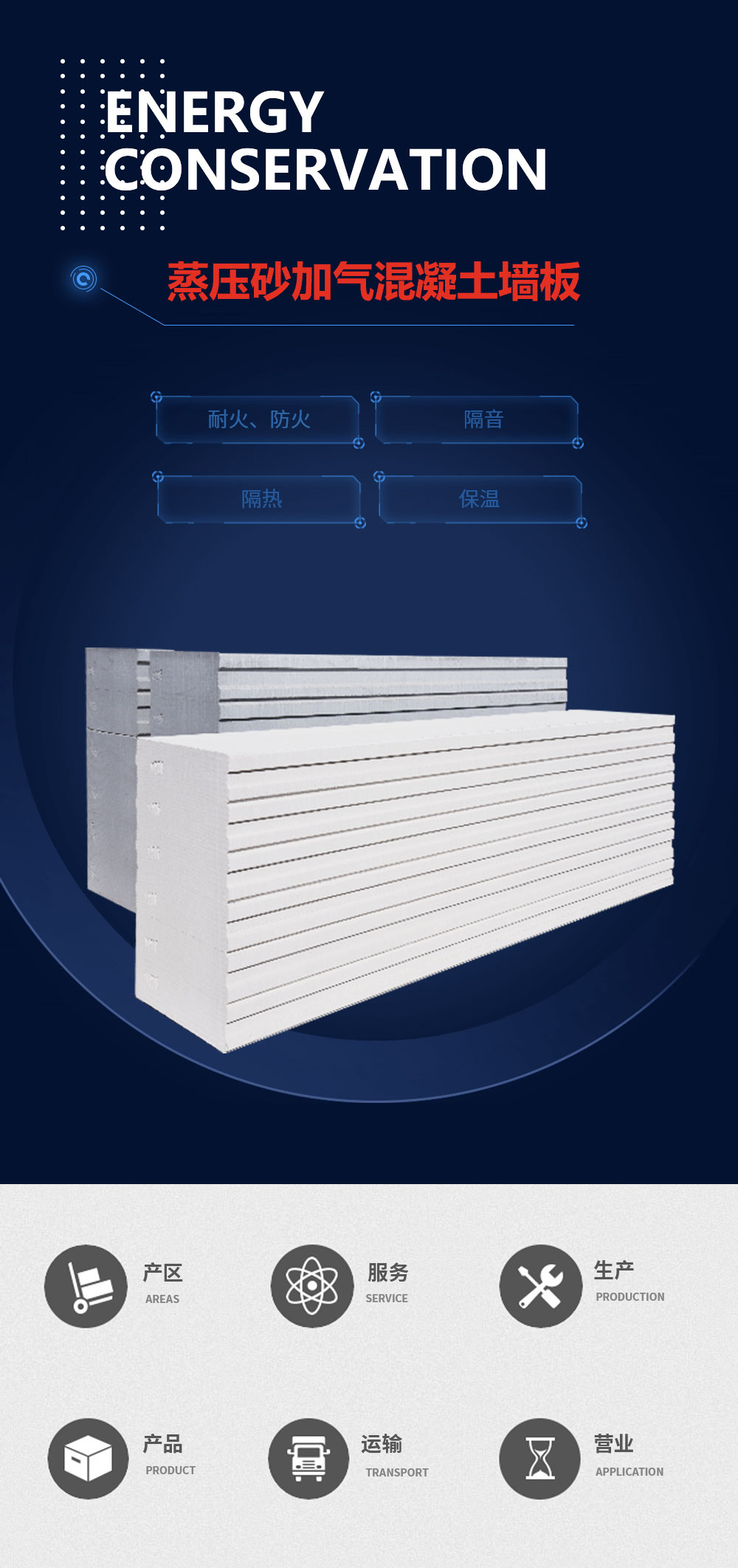 蒸壓加氣混凝土板材是以硅砂(粉煤灰)、水泥、石灰為主要原料,由經(jīng)過防銹處理的鋼筋增強(qiáng),經(jīng)過高溫、高壓、蒸汽養(yǎng)護(hù)而成的多氣孔混凝土制品。其隔音與吸音性能俱佳,具有很好的耐火、防火、隔音、隔熱、保溫等性能;輕質(zhì)性比重為0.5,是普通混凝土的1/4,降低了墻體的自重,減低建筑物基礎(chǔ)造價(jià)。產(chǎn)品有外墻板、內(nèi)墻板、樓層板和屋面板。